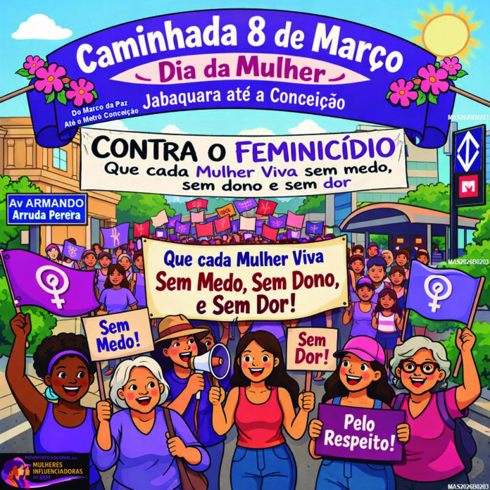 No próximo sábado, 8 de março, data em que se celebra o Dia Internacional da Mulher, o bairro do Jabaquara será palco de um ato de conscientização e enfrentamento à violência de gênero. A Caminhada Contra o Feminicídio reunirá mulheres, lideranças comunitárias e apoiadores a partir das 10h30, com concentração no Marco da Paz, em frente à estação Metrô Jabaquara.