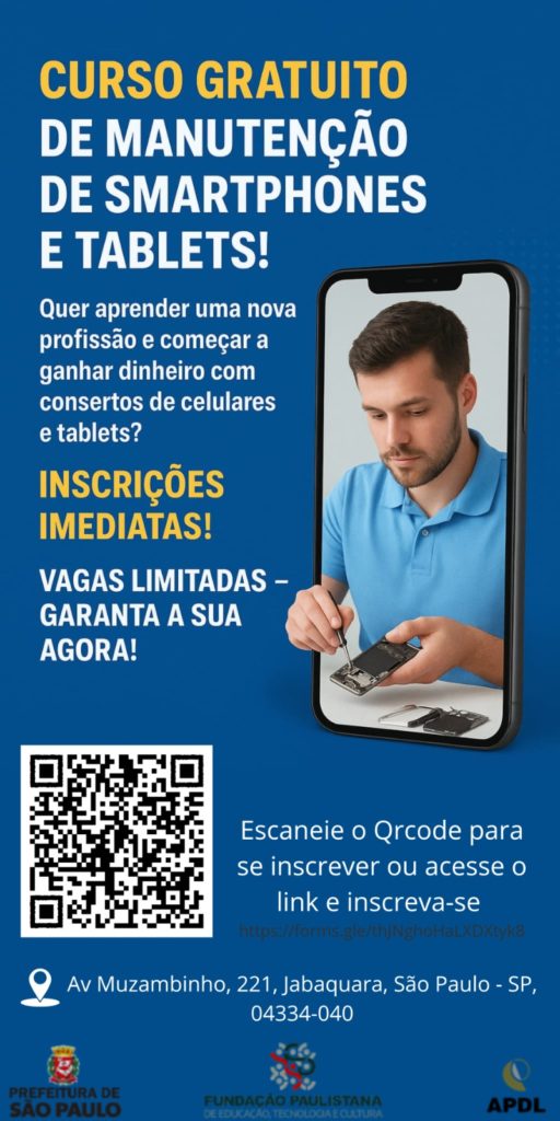 A Associação de Educação, Cultura e Esporte Americanópolis, em parceria com a Fundação Paulistana, a Associação de Promoção do Desenvolvimento Local e a Prefeitura de São Paulo, abriu inscrições para o curso gratuito de manutenção de smartphones e tablets. A formação é voltada a quem deseja ingressar na área de consertos de dispositivos eletrônicos, setor que tem se destacado como oportunidade de geração de renda e rápida inserção no mercado de trabalho.