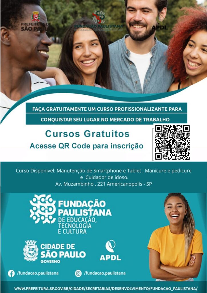 A Fundação Paulistana de Educação, Tecnologia e Cultura, em parceria com a Prefeitura de São Paulo e a APDL, está com inscrições abertas para cursos profissionalizantes gratuitos voltados à qualificação e à inserção no mercado de trabalho.