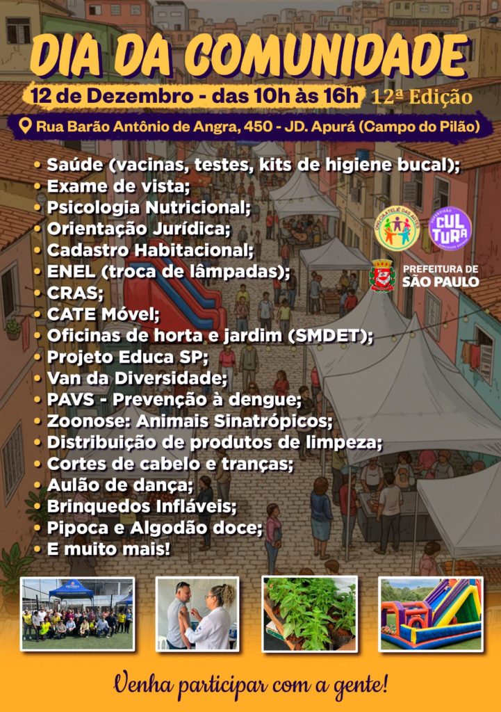 A Prefeitura de São Paulo, por meio da Subprefeitura Cidade Ademar, promove mais uma edição do Dia da Comunidade, uma grande ação social que leva serviços públicos, atividades culturais e lazer diretamente aos moradores da região. A edição de dezembro será realizada na Rua Barão Antônio de Angra, 450, no Jardim Apura, reunindo iniciativas que facilitam o acesso da população a atendimentos essenciais.